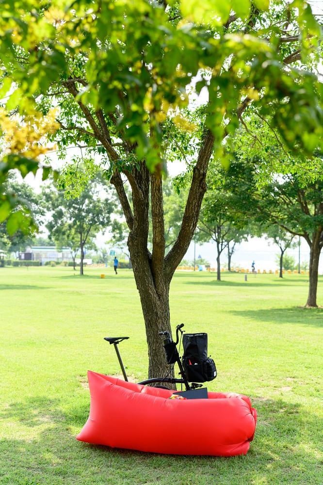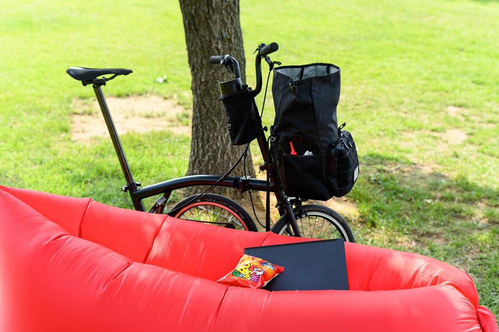 장마철 중간 비가 안오는 틈을 타 한강으로 나왔다. 라라라 미니 투어링백에 과자하나 탄산수 하나 낙서할 종이와 펜 넣고 나왔다. 미니 오백보다 짐이 많이 들어가서 만족하긴 하는데 위로 좀 많이 실으면 옆으로 출렁거리긴 한다. 원래 아무것도 안붙어 있는데 반사 패치 하나 사서 붙혔다. 검정 다이모 테이프도 사서 1kEY!텀블러에 얼음만 넣어왔다. 클릿 페달을 살까 말까 고민인데 그럼 또 신발도 사야하고...아직까지는 마음에 든다. 요즘 안장에서 띡 띡 소리가 나는데 잡질 못하겠다. 카본 레일이라 더 세게 조이기가 무섭다.나온김에 체인오리도 갖고 나와서 칠해줬다. 탄산수 한 잔.